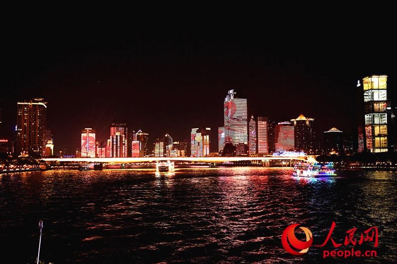 The buildings along the Pearl River produce the number "70" in a light show as a gift to the 70th anniversary of the founding of the People's Republic of China coming soon on Oct. 1.
