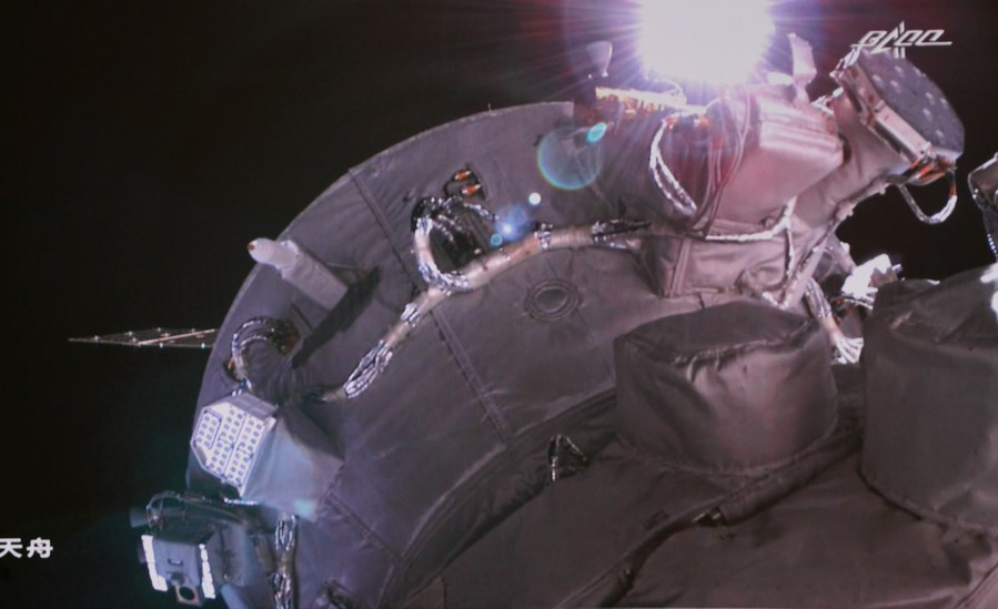 Chinese astronauts (from left) Zhai Zhigang, Wang Yaping, and Ye Guangfu of the Shenzhou XIII spaceship complete their six-month space station mission…[More]