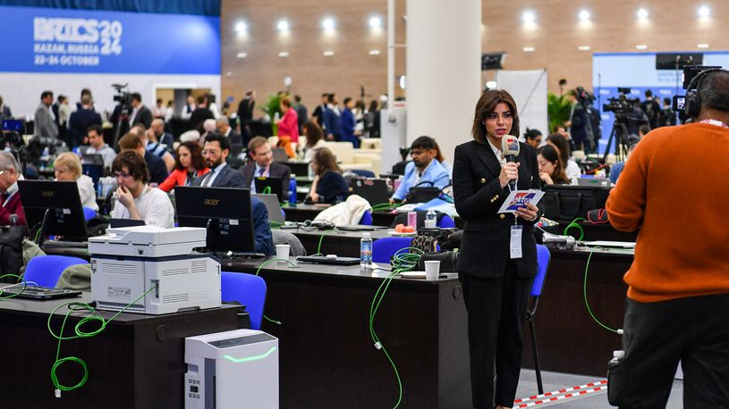 Chinese President Xi Jinping delivers an important speech titled "Combining the Great Strength of the Global South To Build Together a Community with a Shared Future for Mankind" at the "BRICS Plus" leaders' dialogue in Kazan, Russia, Oct. 24, 2024.…