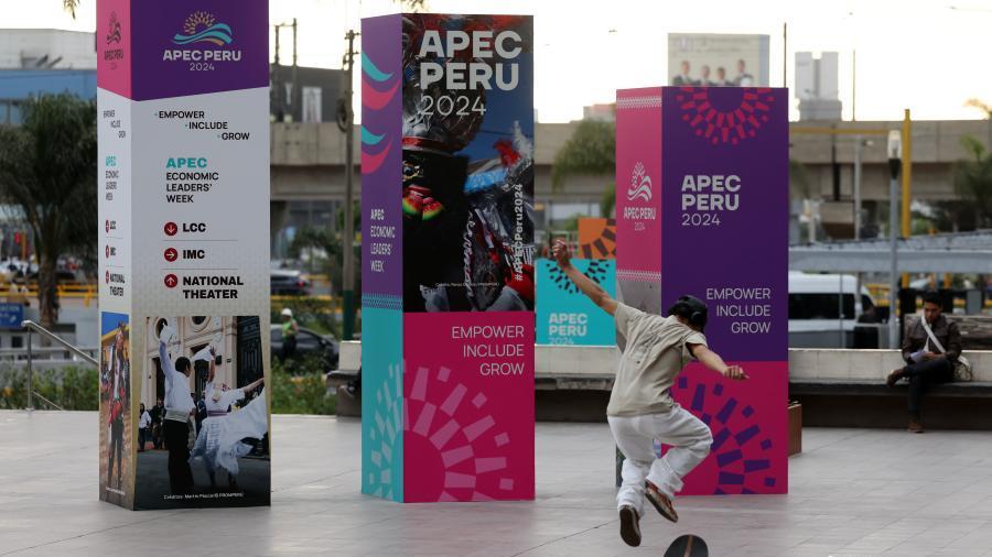 Chinese President Xi Jinping delivers an important speech under the title "Shouldering Responsibility to Our Times And Jointly Promoting Asia-Pacific Development" at the 31st APEC Economic Leaders' Meeting at the Lima Convention Center in Lima, Peru, Nov. 16, 2024.…