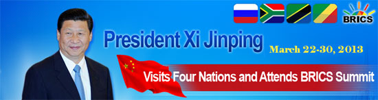 Russia was the first leg of Xi's maiden foreign trip as president, which would also take him to Tanzania, South Africa and the Republic of the Congo.