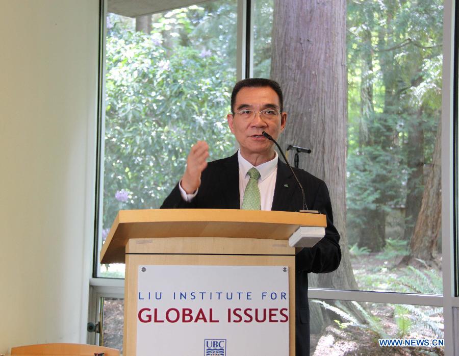 Chinese economist and professor of Peking University Justin Yifu Lin speaks at University of British Columbia in Vancouver, Canada, on May 26, 2014. Lin Yifu gave a lecture here Monday and said that China would maintain its high-speed economic developing in 20 years and the development benefits the world. (Xinhua/Jiang Yaping)