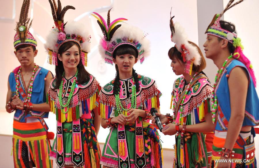 People of ethnic group from southeast China's Taiwan attend the 2nd China-South Asia Expo in Kunming, capital of southwest China's Yunnan Province, June 6, 2014. Over 1,000 enterprises from 46 countries and regions took part in the expo which will last till June 10. (Xinhua/Lin Yiguang)