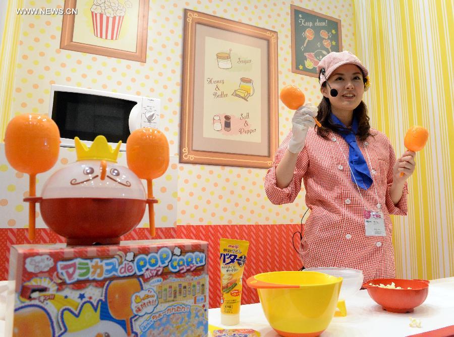A staff member displays a product during the International Tokyo Toy Show in Tokyo, capital of Japan, June 12, 2014. The International Tokyo Toy Show opened here on Thursday. Some 157 attendees from Japan and other countries and regions displayed about 35,000 new toys during the show. (Xinhua/Ma Ping)