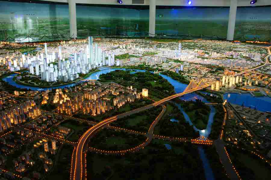 Sand table model of the Tianjin Binhai New Area. (People's Daily Online/Li Xiang)