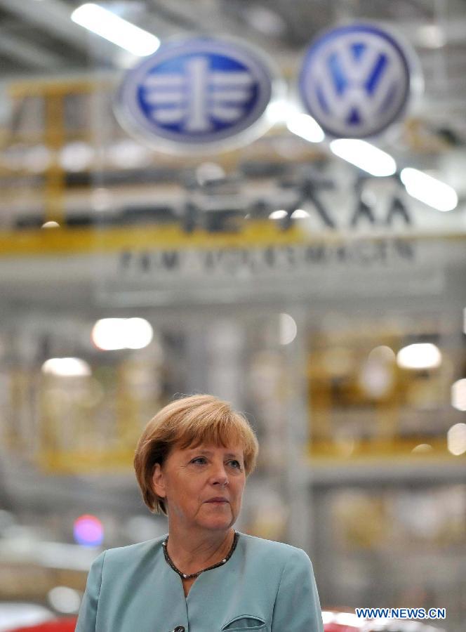 Merkel visits branch company of FAW-Volkswagen in Chengdu (4)