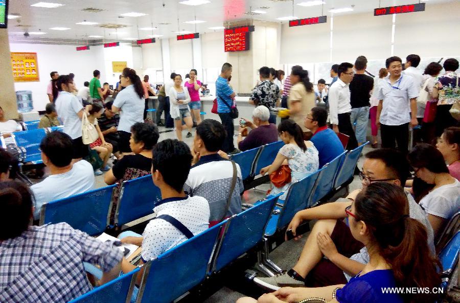 People wait to register for home purchase at a real estate trading center in Jinan, capital of east China's Shandong Province, July 10, 2014. Jinan on Thursday lifted its three-year home purchase restrictions by allowing residents to buy more properties. (Xinhua/Guo Xulei)