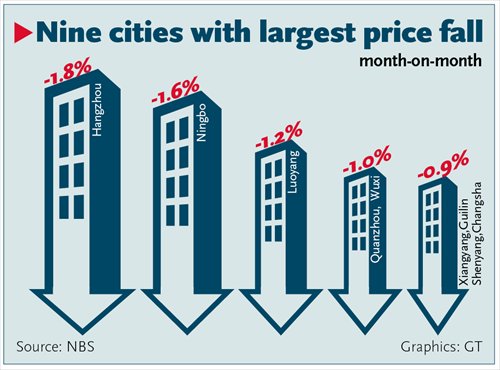 Prices in Shanghai dropped by 0.7 percent in June compared to May, and Guangzhou, capital of South China's Guangdong Province, logged a price fall of 0.6 percent during the month, though prices in Beijing inched up by 0.1 percent.