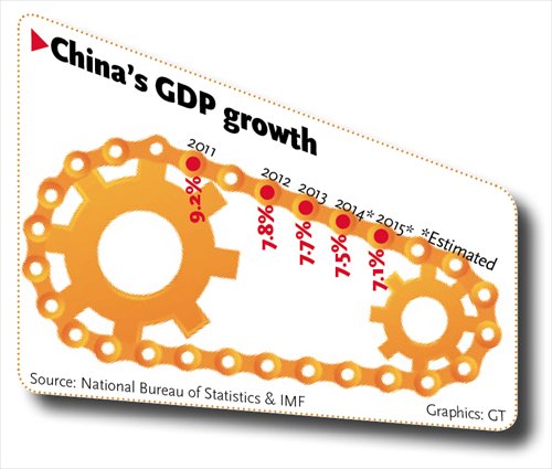 "Regarding the growth target for 2015, while most Directors concurred that a range of 6.5 to 7 percent would be consistent with the goal of transitioning to a safer and more sustainable growth path, a few other Directors considered a lower target more appropriate," the IMF noted.
