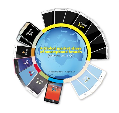 In the first quarter of 2014, Xiaomi, founded only in 2010, had a 4 percent share of the worldwide smartphone market in terms of shipments, ranking No.7, according to the latest data from Taiwan-based market research firm TrendForce.