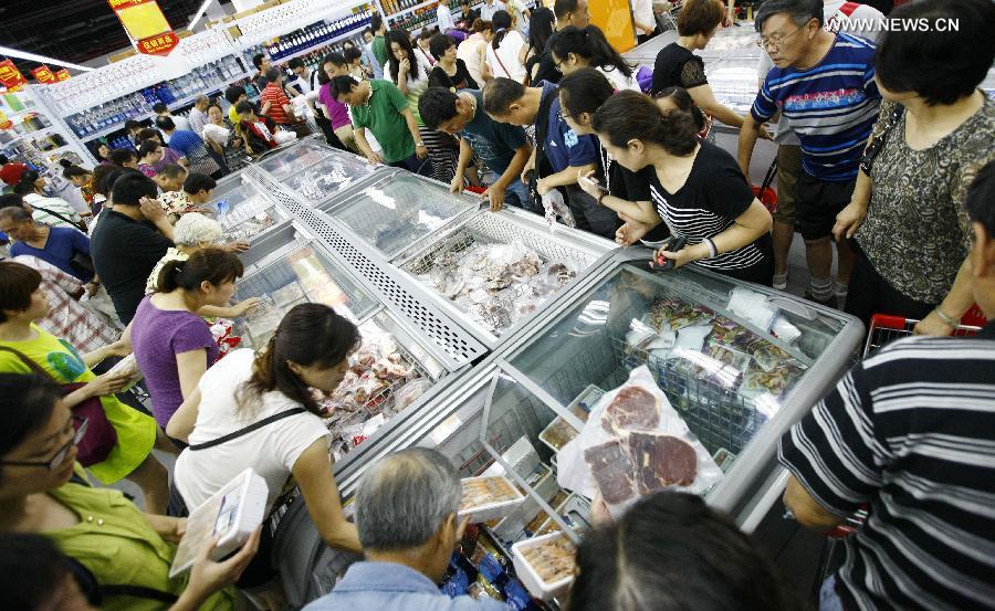 Citizens buy frozen food in the Waigaoqiao Direct Imported Goods market in the Shanghai Free Trade Zone (FTZ) in Shanghai, east China, Aug. 13, 2014. The Shanghai FTZ was launched in September 2013. It allows foreign businesses to invest in a series of sectors. [Photo: Xinhua/Fang Zhe]