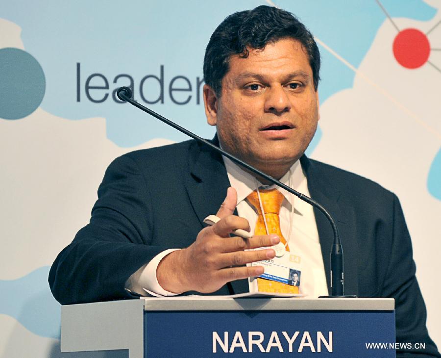 Amit Narayan, founder and chief executive officer of America-based Autogrid Systems Inc, speaks at the Annual Meeting of the New Champions 2014, also known as the Summer Davos forum, in Tianjin, north China, Sept. 12, 2014. (Xinhua/Yue Yuewei)