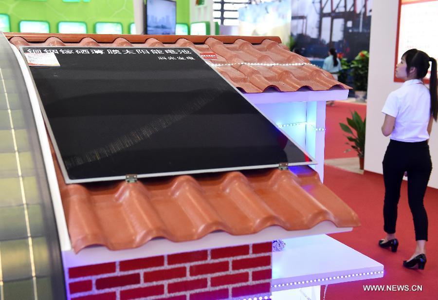 A solar-power battery is displayed during the 11th China-ASEAN Expo in Nanning, capital of south China's Guangxi Zhuang Autonomous Region, Sept. 17, 2014. New energy and high tech equipments attracted both exhibitors and visitors from home and abroad during the 11th CAEXPO held in Nanning from Sept. 16 to 19. CAEXPO takes place annually in Nanning and is expected to promote free trade between China and the ASEAN countries. (Xinhua/Zhou Hua)
