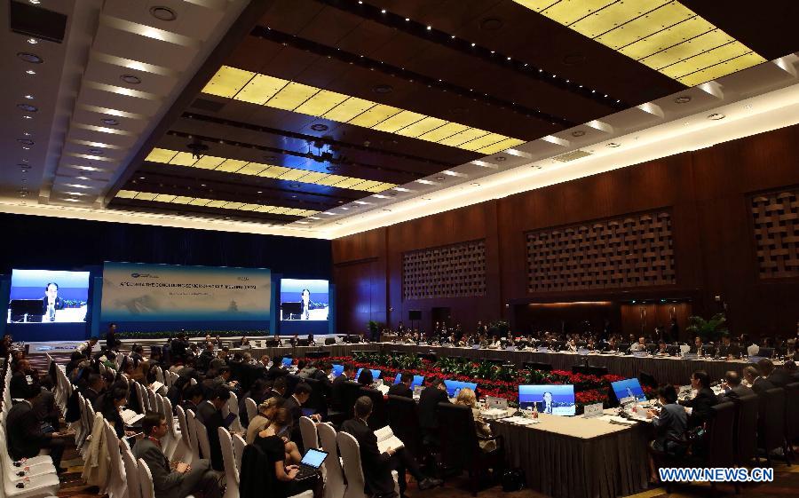 The Asia-Pacific Economic Cooperation (APEC) 2014 Concluding Senior Officials Meeting (CSOM) is held at China National Convention Center in Beijing, capital of China, Nov. 5, 2014. The APEC 2014 CSOM will be held here from Nov. 5 to 6. (Xinhua/Jin Liwang)