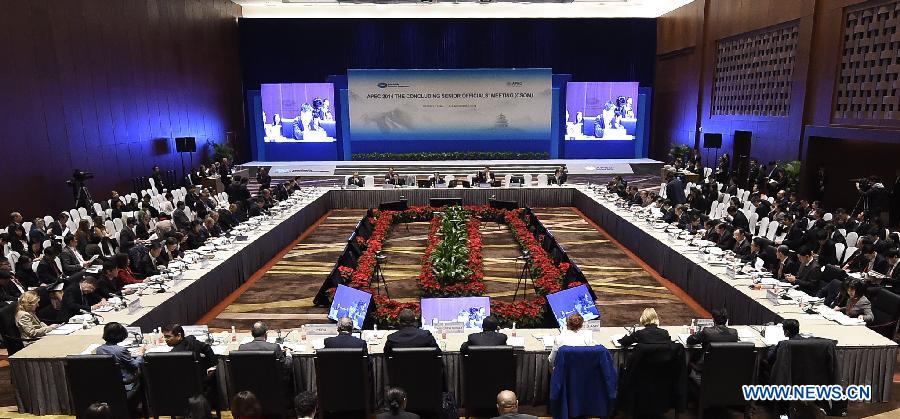 The Asia-Pacific Economic Cooperation (APEC) 2014 Concluding Senior Officials Meeting (CSOM) is held at China National Convention Center in Beijing, capital of China, Nov. 5, 2014. The APEC 2014 CSOM will be held here from Nov. 5 to 6. (Xinhua/Qi Heng)
