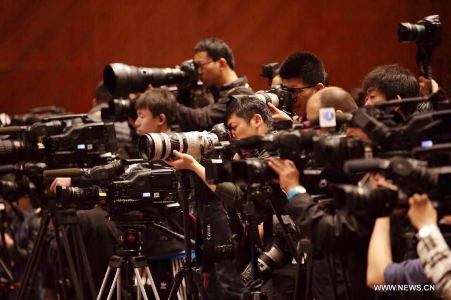 Journalists cover the Asia-Pacific Economic Cooperation (APEC) 2014 Concluding Senior Officials Meeting (CSOM) at China National Convention Center in Beijing, capital of China, Nov. 5, 2014. The APEC 2014 CSOM will be held here from Nov. 5 to 6. (Xinhua/Jin Liwang)
