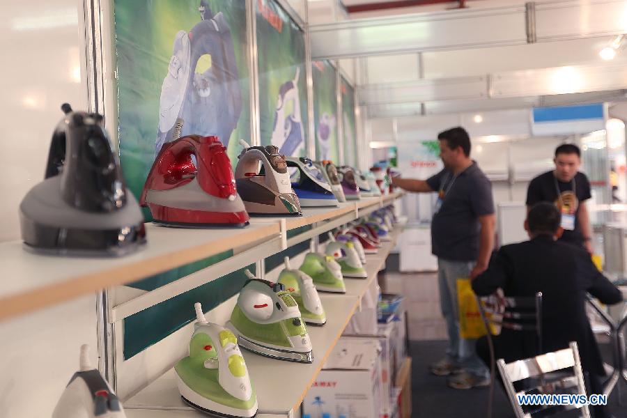 | People visit the China Brand Show exhibition, in Sao Paulo, Brazil, on Nov. 18, 2014. The exhibition, which aims to introduce products by brands of China to Brazilian traders and clients is opening in Sao Paulo until Nov. 20. (Xinhua/Rahel Patrasso) |