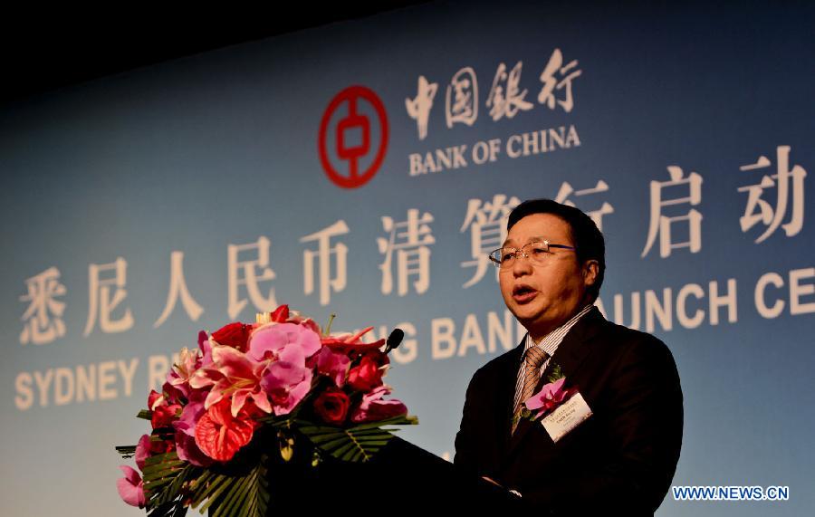 Bank of China President Chen Siqing speaks at the launching ceremony of Bank of China's Sydney RMB clearing bank in Sydney, Australia, Feb. 9, 2015. (Xinhua/Jin Linpeng)