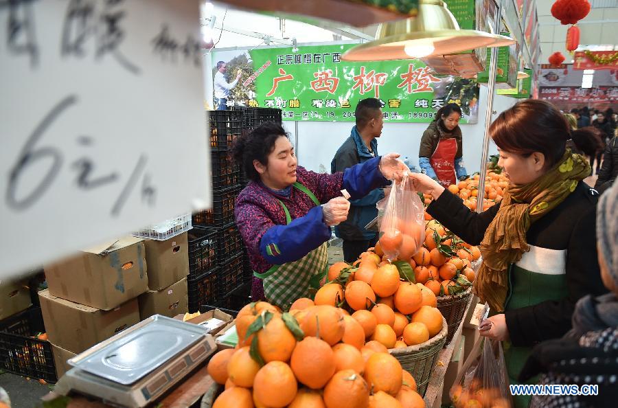 A resident purchases oranges at a market in Yinchuan, capital of northwest China's Ningxia Hui Autonomous Region, Feb. 2, 2015. China's consumer price index, the main gauge of inflation, grew 0.8 percent year on year in January, the slowest rise in more than five years, the National Bureau of Statistics said on Tuesday. (Xinhua/Li Ran)