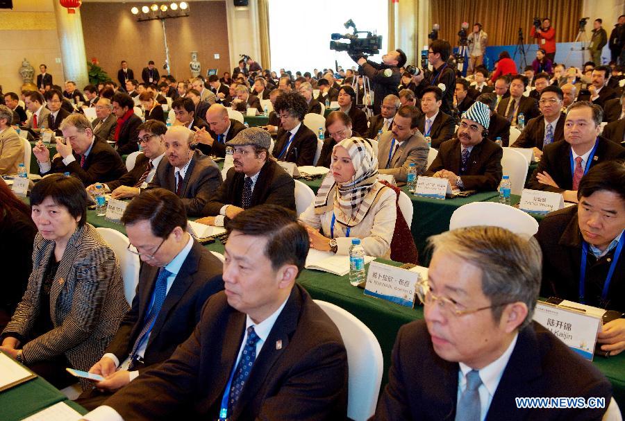 Guests listen to a speech during the summit forum of the international seminar on the 21st Century Maritime Silk Road held in Quanzhou, southeast China's Fujian Province, Feb. 12, 2015. The seminar opened here on Wednesday. (Xinhua/Jiang Kehong)