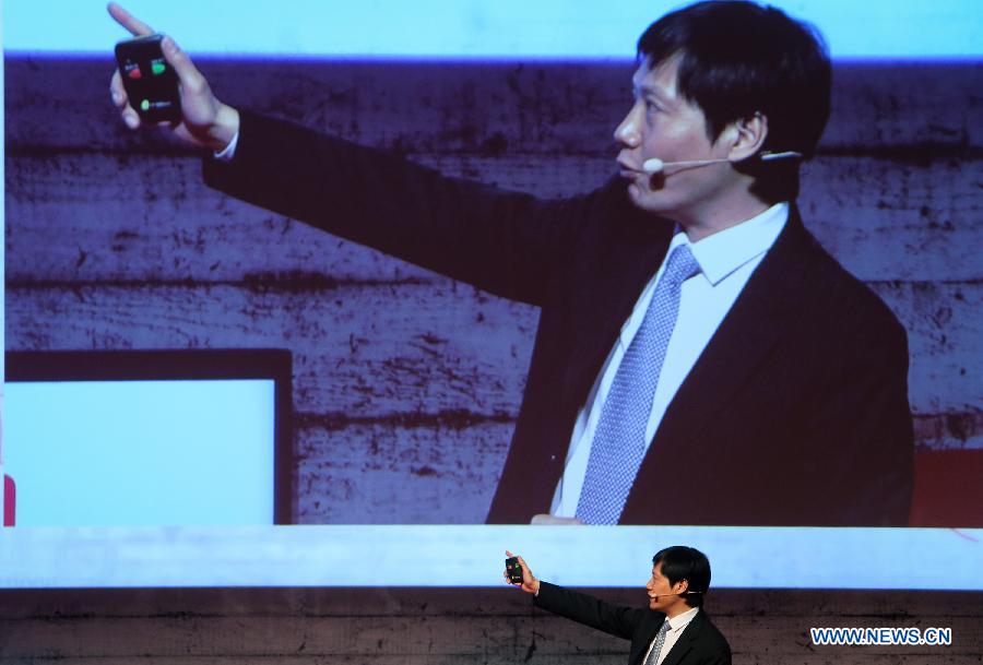 Lei Jun, CEO of Xiaomi Tech, speaks during a summit session of 2015 CeBIT Technology Trade fair in Hanover, Germany, on March 16, 2015. Top IT business fair CeBIT 2015, which features a strong Chinese presence, opened on Sunday in Germany. (Xinhua/Zhang Fan)
