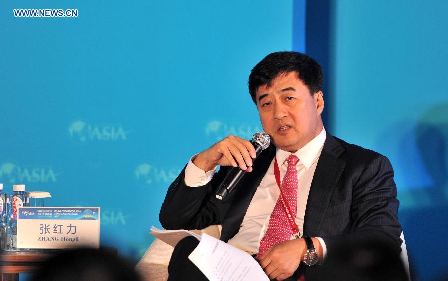 Zhang Hongli, vice president of Industrial and Commercial Bank of China, speaks at a sub-forum with the theme of "The Asset Management Boom: Innovation, Risks & Regulation" during the 2015 Boao Forum for Asia (BFA) in Boao, south China's Hainan Province, March 27, 2015. (Xinhua/Yang Guanyu)