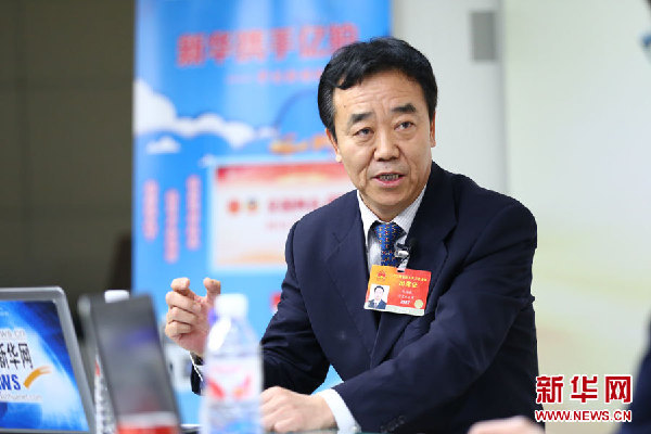 | A NPC deputy and mayor of Wuzhong of northwestern China’s Ningxia Hui Autonomous Region gives an interview with Xinhuanet. (Photo source: Xinhuanet photo) |