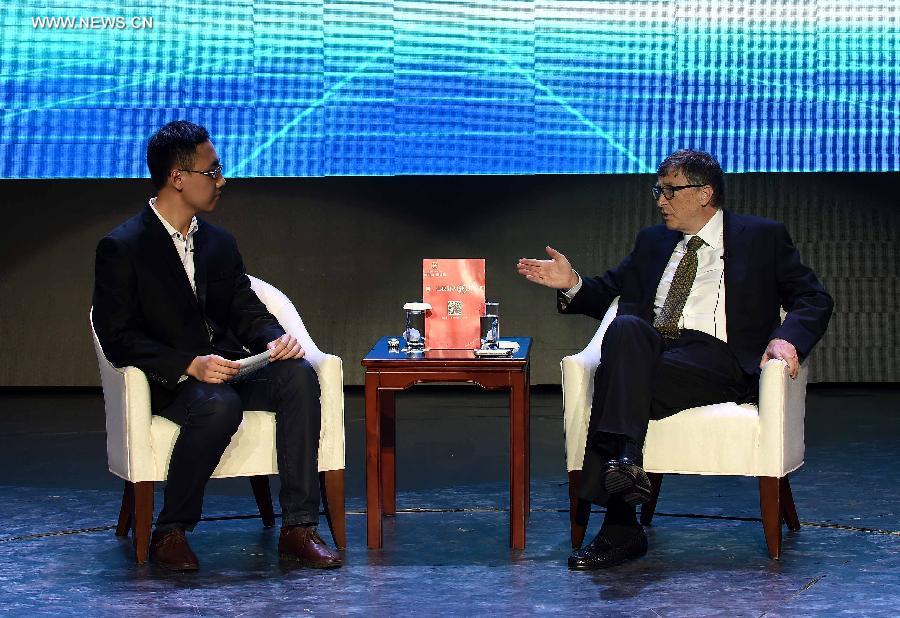 | The Bill & Melinda Gates Foundation Co-Chair Bill Gates (R) receives an interview with China's Xinhua News Agency on the sidelines of the 2015 Boao Forum for Asia (BFA) in Boao, south China's Hainan Province, March 28, 2015. (Xinhua/Zhao Yingquan) |