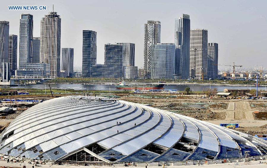 Photo taken on Nov. 7, 2014 shows the Yujiapu Railway Station and its surrounding landscape at Binhai New Area of the China (Tianjin) Pilot Free Trade Zone in north China's Tianjin Municipality. Three new free trade zones (FTZ) began official operation on April 21, 2015 as China seeks to draw more international commerce. (Xinhua/Yue Yuewei)