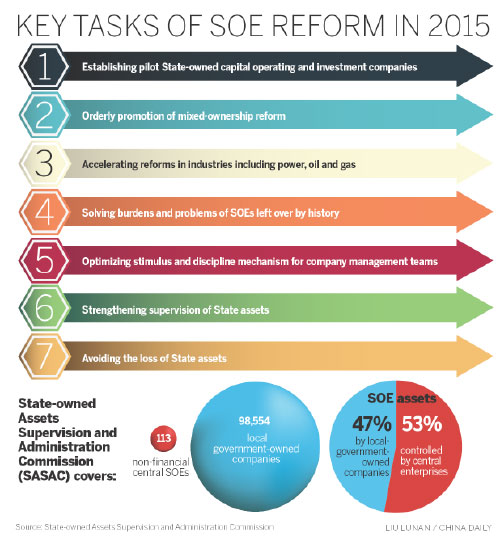 Local governments have moved more quickly than central authorities in implementing SOE reform, as they needed to find new sources for revenue and lower their liabilities. More than 20 provinces and municipalities have announced local reform plans, including promoting mixed ownership and restructuring State capital.