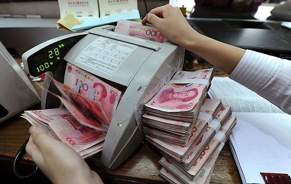 File photo of a bank clerk uses a machine to count yuan banknotes in a bank in Hefei in central China's Anhui province. [Photo: china.org.cn]