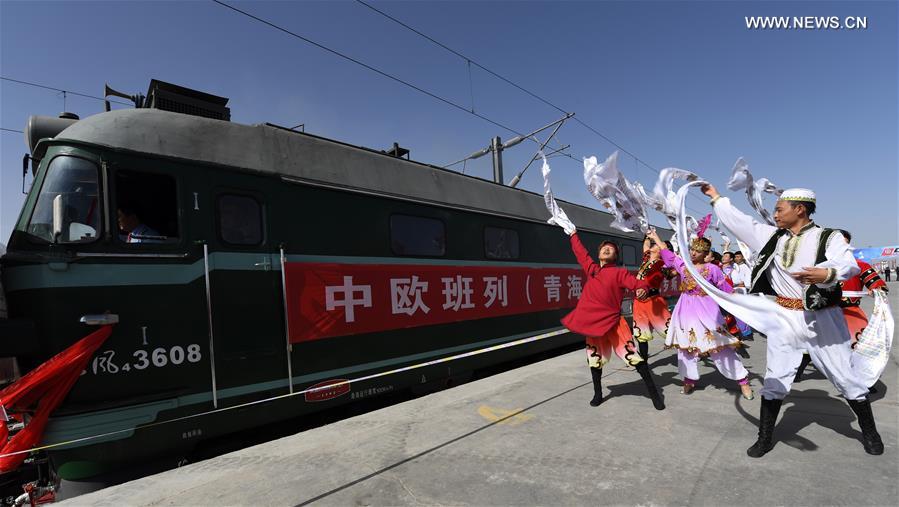 A new China-Europe freight train linking Russia with Golmud, northwest China's Qinghai Province, is about to set off in Golmud, Aug. 20, 2017. The train, loaded with containers of chemical, left China through the Alataw Pass in Xinjiang, and will pass Kazakhstan before reaching Perm in Russia. The trip covers about 6,360 kilometers and takes 10 days, 30 days less than the previous sea route. (Xinhua/Wang Bo)