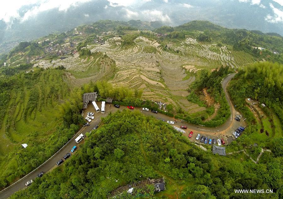 Photo taken on May 17, 2014 shows the scenery of terraced fields in Chongtou Town of Yunhe County in Lishui City, east China's Zhejiang Province. (Xinhua/Liang Zhen)