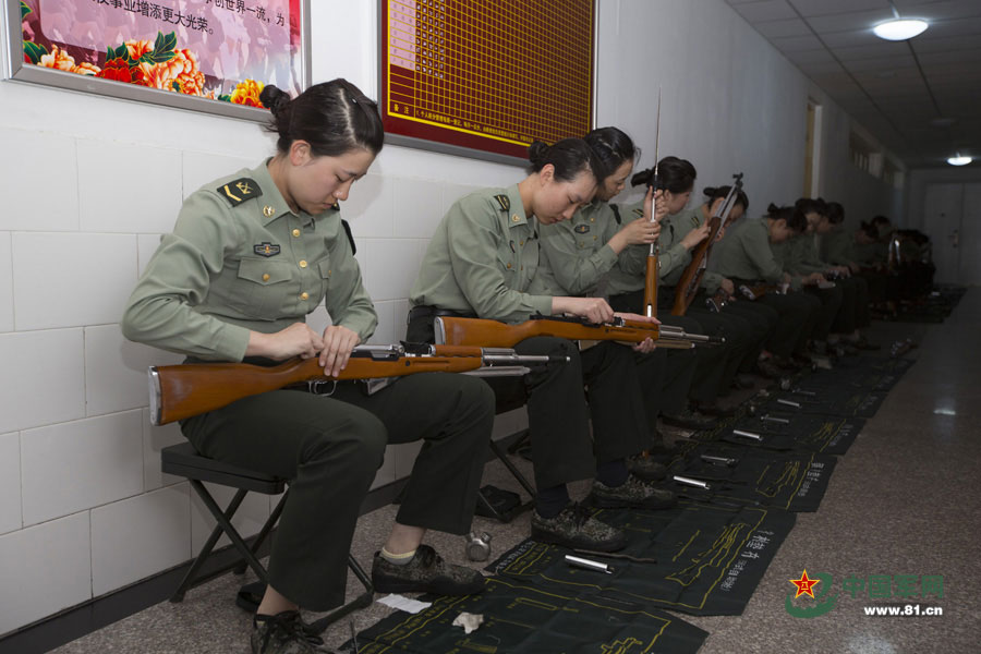 A set of photos released by www.81.cn captures the rarely seen training scenes of the PLA's first female honor guard, whose debut on Monday immediately grabbed public attention. (Photo/Wan Xiaojun)