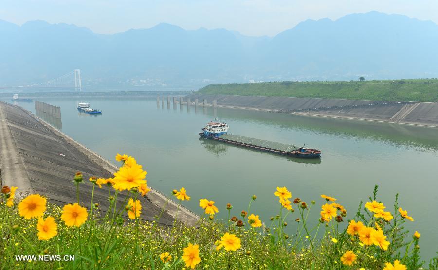 Vessels sail to the five-level ship lock of the Three Gorges in Yichang, central China's Hubei Province, May 19, 2014. The Three Gorges have lowered its water level to meet with the upcoming flood season, which allows vessels to shorten travel time by 40 minutes as they pass the five-level ship lock of the Three Gorges. (Xinhua/Zheng Jiayu)