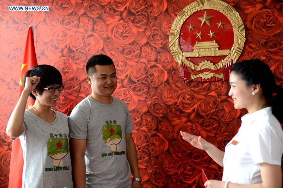 Chinese couples chose to register for marriage on 520 day (Photo/Xinhua)