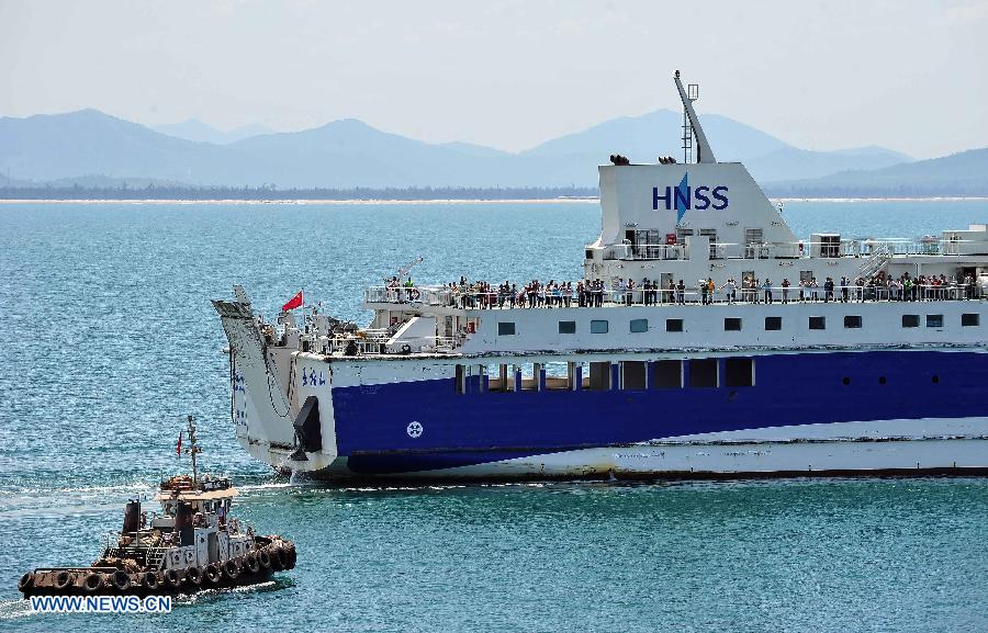 The Chinese ship "Wu Zhishan" leaves Vung Ang port in Vietnam's Ha Tinh Province, May 19, 2014. The ship "Wu Zhishan" arrived here on Monday morning to evacuate Chinese nationals. After about 1,000 Chinese nationals came aboard, the ship left for Xiuying port of southern Chinese city Haikou. (Xinhua/Guo Cheng)