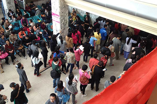"The number of outpatients in our obstetrics department has been increasing by 20 percent annually in recent years, hitting more than 80,000 people last year. This year the number is going to be even greater," said Zhang Fuchun, assistant president of Peking University Third Hospital.