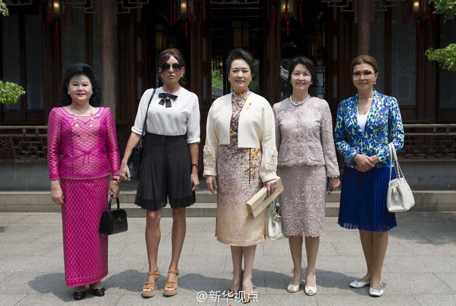 As Asia's regional leaders were busy on Wednesday with a security summit in Shanghai, Chinese first lady Peng Liyuan invited her counterparts to enjoy China's traditional arts and culture in the centuries-old Yuyuan Garden.