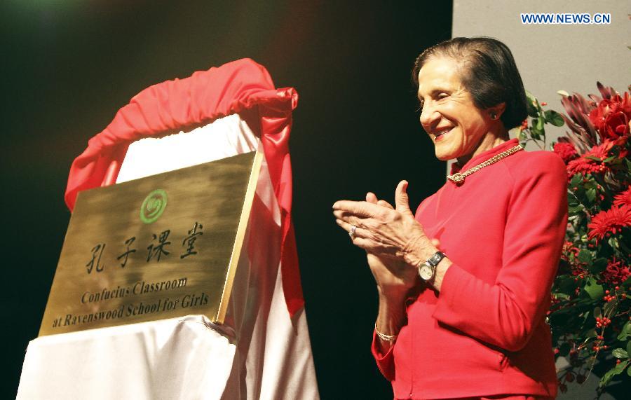 Australian New South Wales Governor Marie Bashir attends the opening of Ravenswood's Confucius Classroom in the Ravenswood School for Girls in Sydney, Australia, May 21, 2014. (Xinhua/Jin Linpeng)