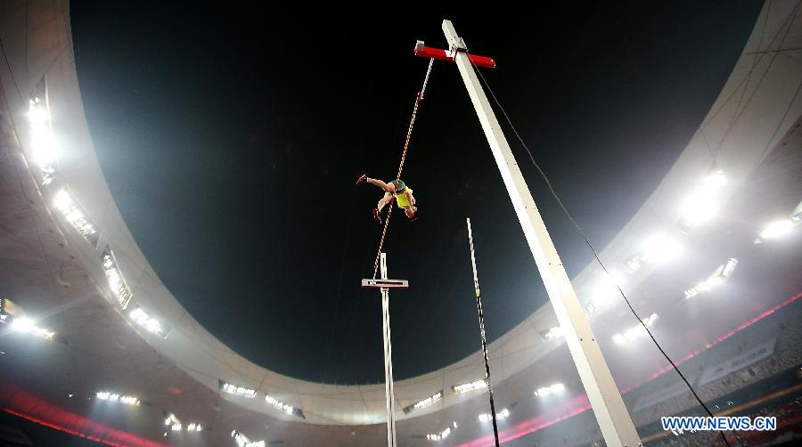 Xue Changrui of China competes during the men's pole vault at the IAAF World Challenge Beijing, China, May 21, 2014. Xue Changrui claimed the title with 5.80m. (Xinhua/Li Ming)