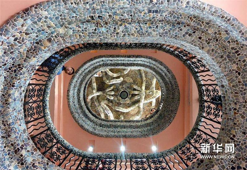 A winding corridor decorated with porcelain fragments at the China House. [Photo/Xinhua]
