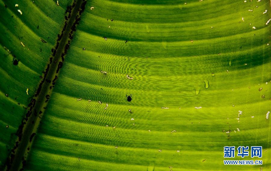 Photo taken on May 12, 2014 shows a spider on a banana leaf in Medog County in Nyingchi Prefecture, Tibet Autonomous Region. (Photo/Xinhua)