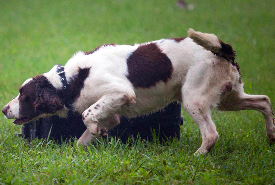 82 police dogs from across the country compete in a canine combat skill competition with their trainer in Foshan, Guangzhou province on May 20, 2014. The three-day-long competition contained seven games for different kinds of police dogs. (Photo/ Guangzhou Daily)