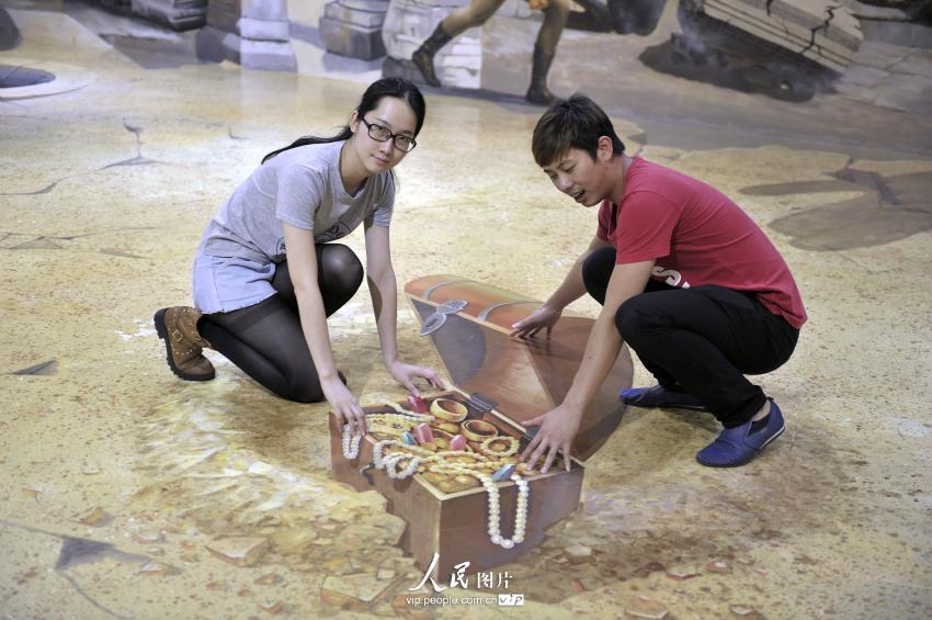 The largest 3D magic city in Asia opened in Guangzhou recently. Visitors can interact with the 3D paintings by posing with them. The photos are interesting because the 3D effect can give a transcending experience to visitors.(vip.people.com.cn/Gao Dianhua)