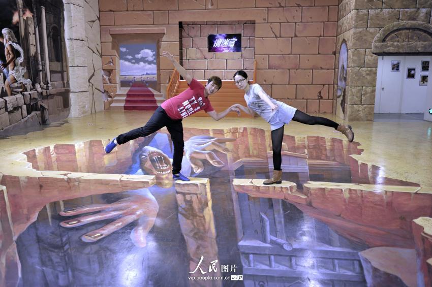 The largest 3D magic city in Asia opened in Guangzhou recently. Visitors can interact with the 3D paintings by posing with them. The photos are interesting because the 3D effect can give a transcending experience to visitors.(vip.people.com.cn/Gao Dianhua)