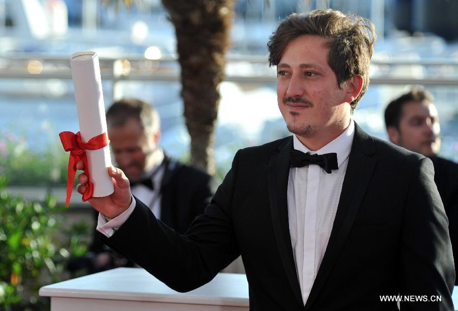 Director Simon Mesa Soto presents Short Films Palme d'Or of the 67th Cannes Film Festival for his film Leidi, in Cannes, France, May 24, 2014.(Xinhua/Chen Xiaowei)