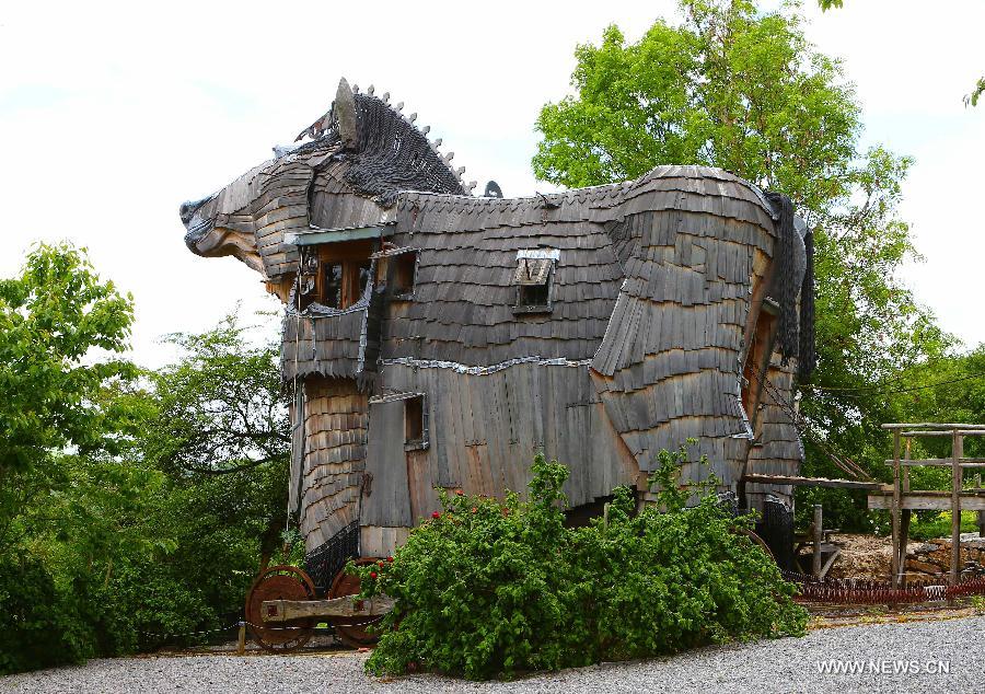 Photo taken on May 22, 2014 shows Trojan Horse of the La Balad des Gnomes hotel near the town of Durbuy, Belgium. The Trojan Horse is a specially designed building of hotel La Balad des Gnomes in Belgium. (Xinhua/Gong Bing)