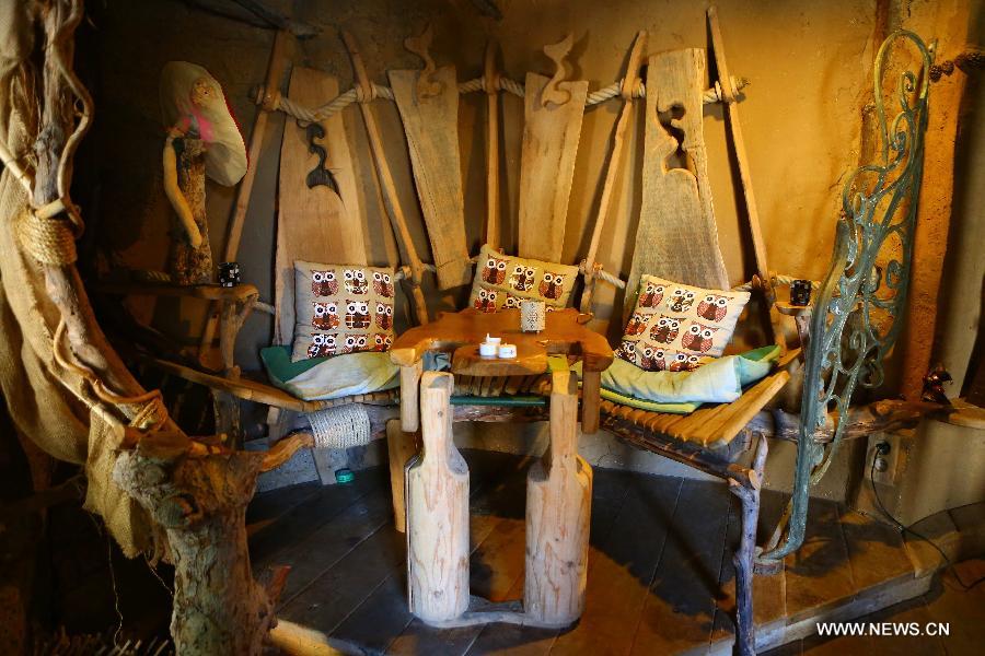 Photo taken on May 22, 2014 shows the decoration inside the La Balad des Gnomes hotel near the town of Durbuy, Belgium. The Trojan Horse is a specially designed building of hotel La Balad des Gnomes in Belgium. (Xinhua/Gong Bing)