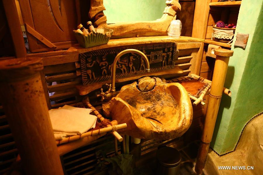 Photo taken on May 22, 2014 shows the decoration inside the La Balad des Gnomes hotel near the town of Durbuy, Belgium. The Trojan Horse is a specially designed building of hotel La Balad des Gnomes in Belgium. (Xinhua/Gong Bing)
